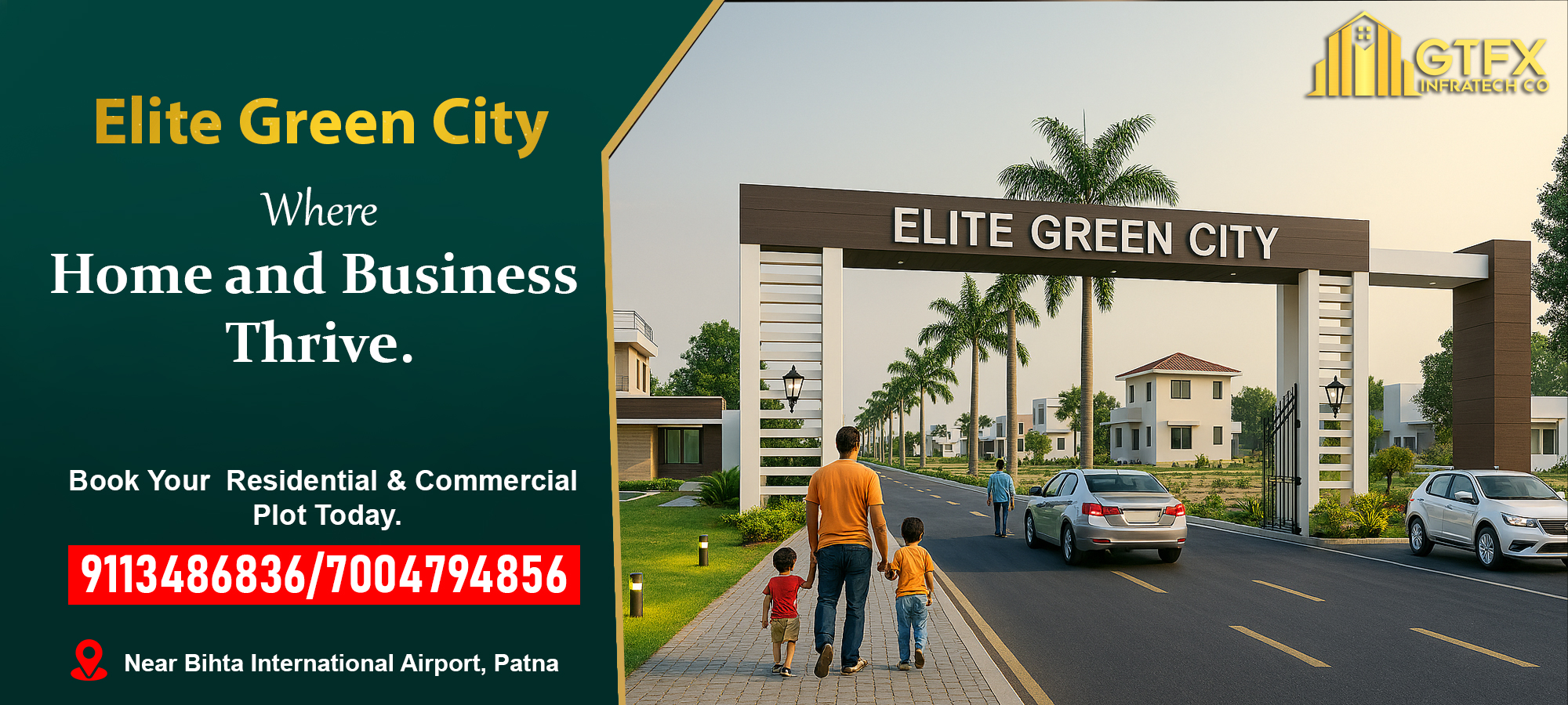 Elite Green City by GTFX Infratech Co is a premium residential plotting project near Bihta International Airport, Patna, designed for smart investors and modern families. Located in one of the fastest-growing real estate hubs of Bihar, this project offers RERA-registered, legally verified plots with world-class planning and infrastructure. With excellent connectivity to Patna–Bihta Highway and close proximity to upcoming commercial zones, Elite Green City is the perfect destination for those looking to build their dream home or secure a high-return investment in Patna’s most promising area..